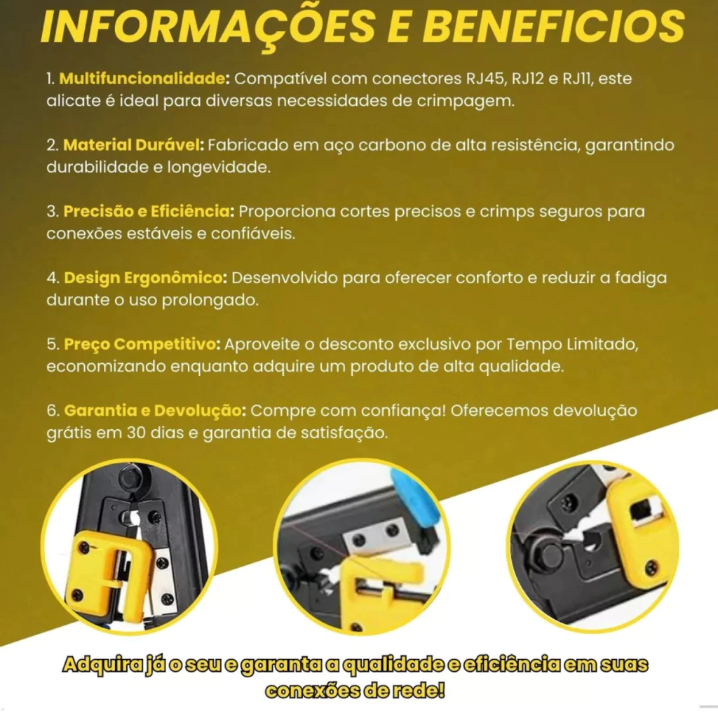 Alicate de Crimpagem RJ45 RJ12 RJ11 Profissional 3 em 1 – Alta Precisão e Versatilidade