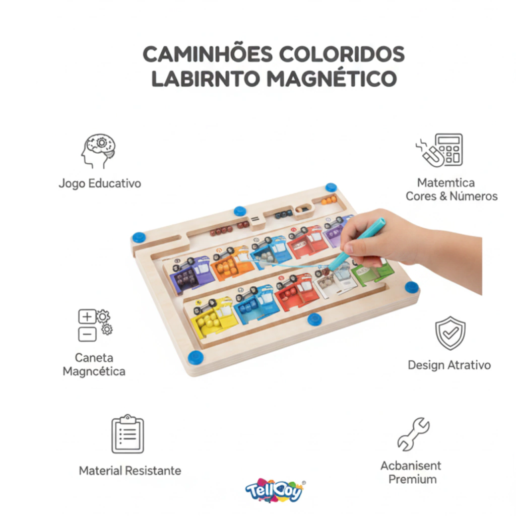 Estimule o aprendizado e a coordenação motora com o Brinquedo Educativo Montessori Labirinto Magnético com Cores e Números.