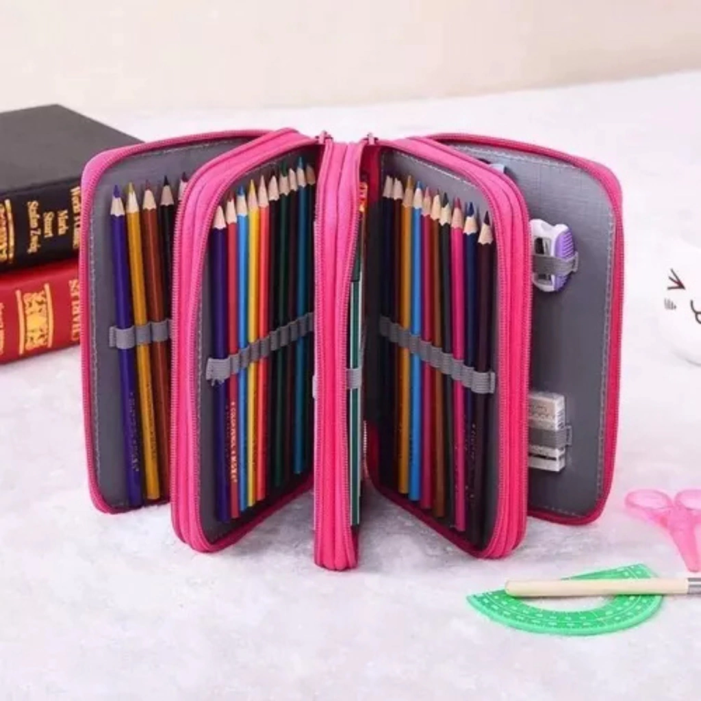 Este estojo é a solução ideal para quem deseja organização e praticidade sem abrir mão de um design sofisticado. Com seu material durável e compartimentos estratégicos, ele atende tanto a artistas quanto a estudantes, proporcionando fácil acesso a seus materiais criativos ou escolares.