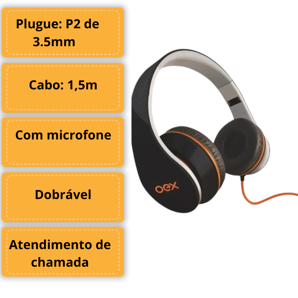 Headset Sense Dobrável com Microfone – P2 3,5mm – Som Estéreo de Alta Qualidade