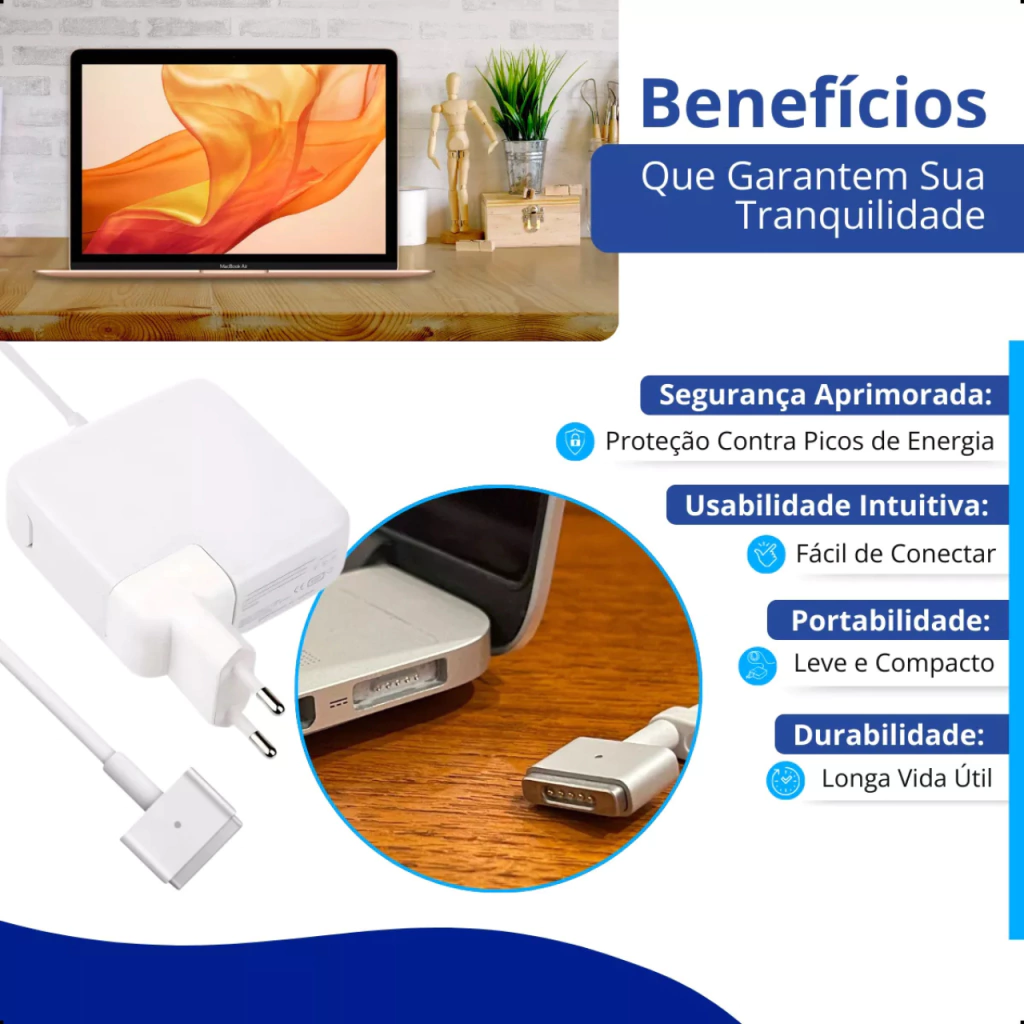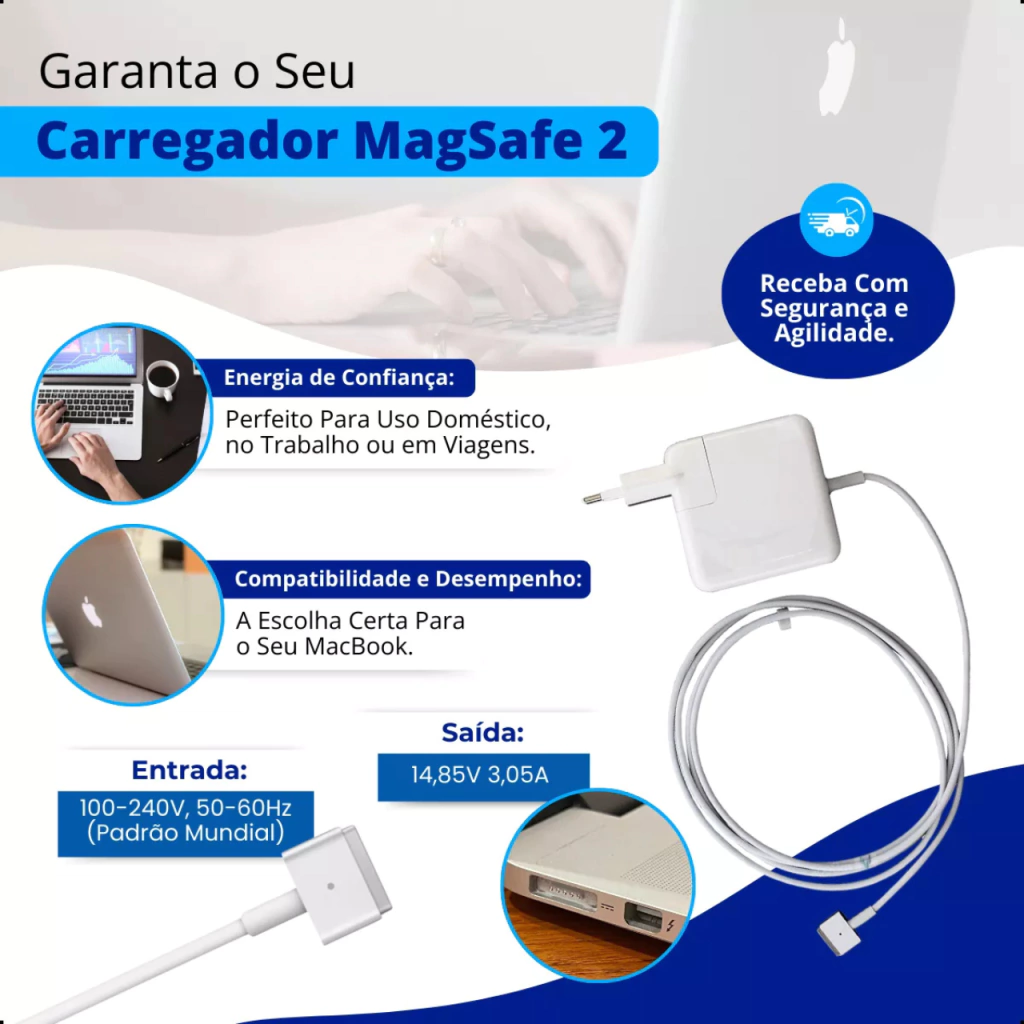A Fonte Carregador MagSafe 2 60W é ideal para quem busca segurança e eficiência na recarga do MacBook. Seu sistema magnético facilita a conexão e evita danos ao conector, garantindo maior durabilidade.
