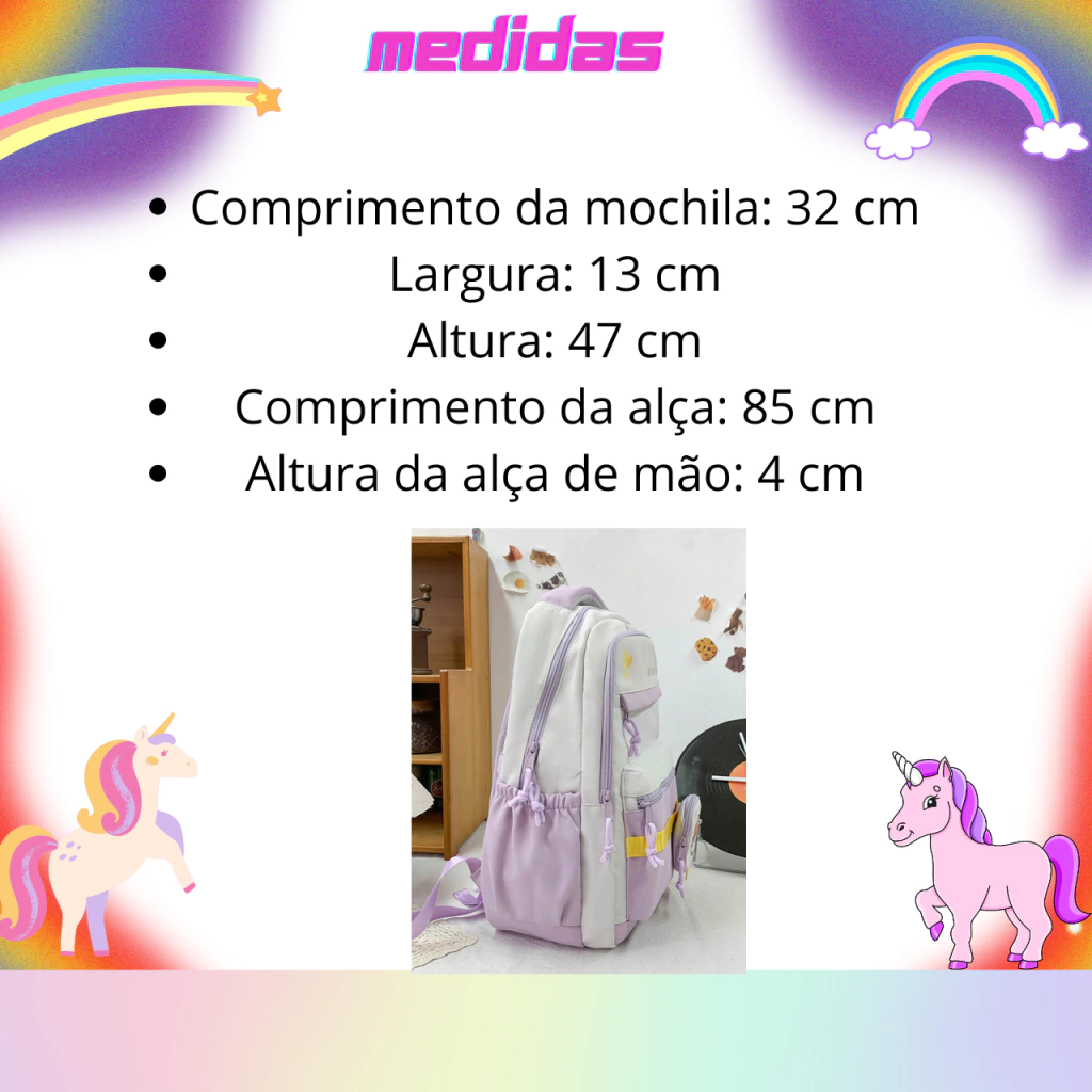 1 Mochila Escolar Feminina de Grande Capacidade.