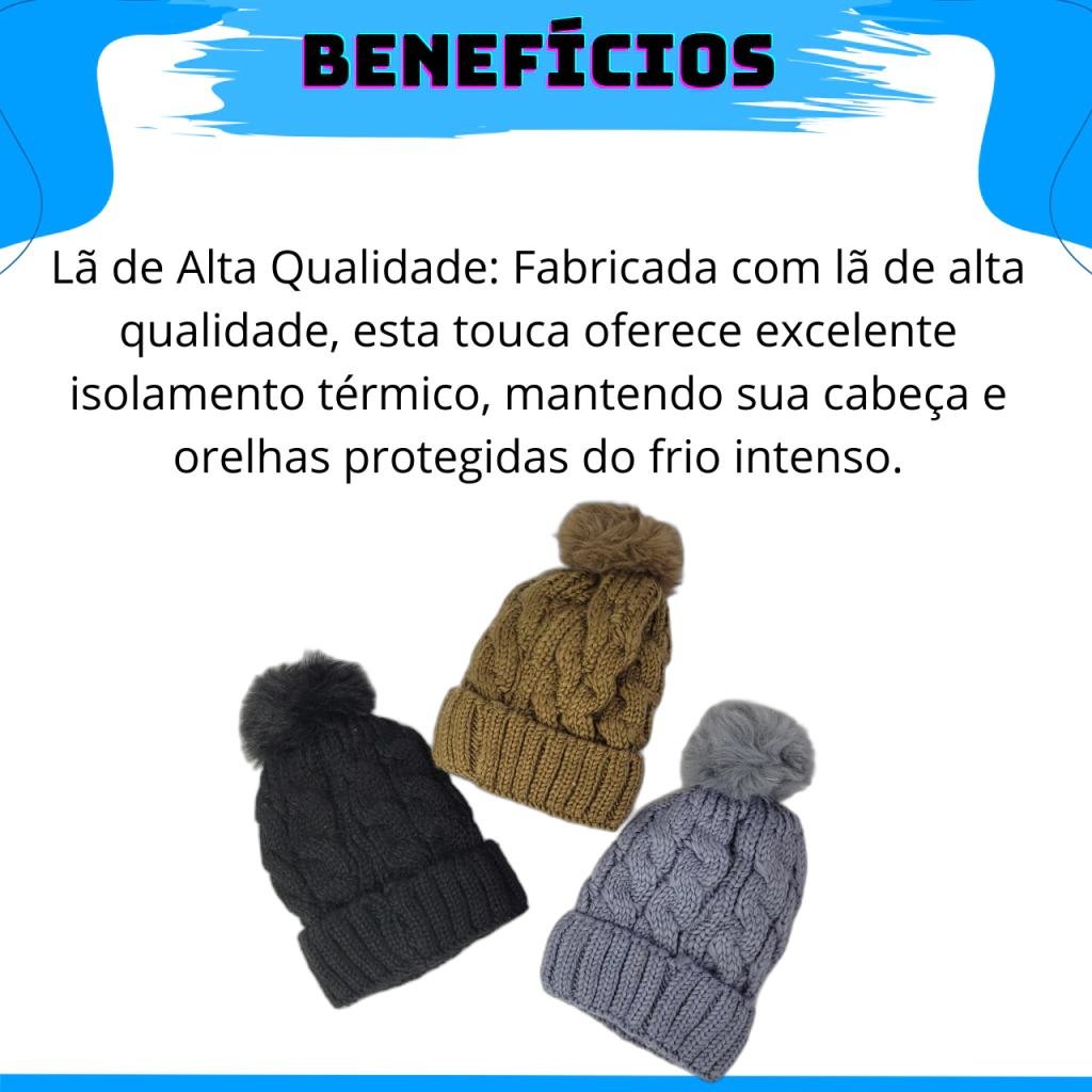 Gorro estilo lã trançada, super quentinha e confortável.